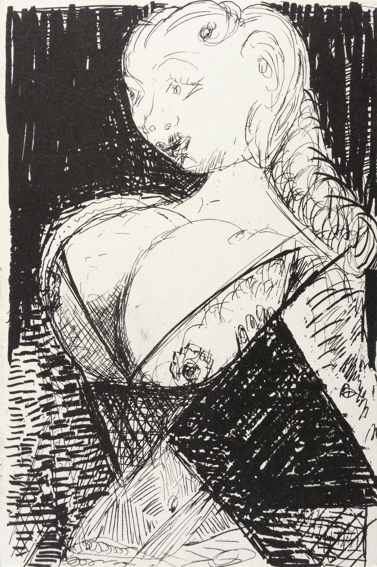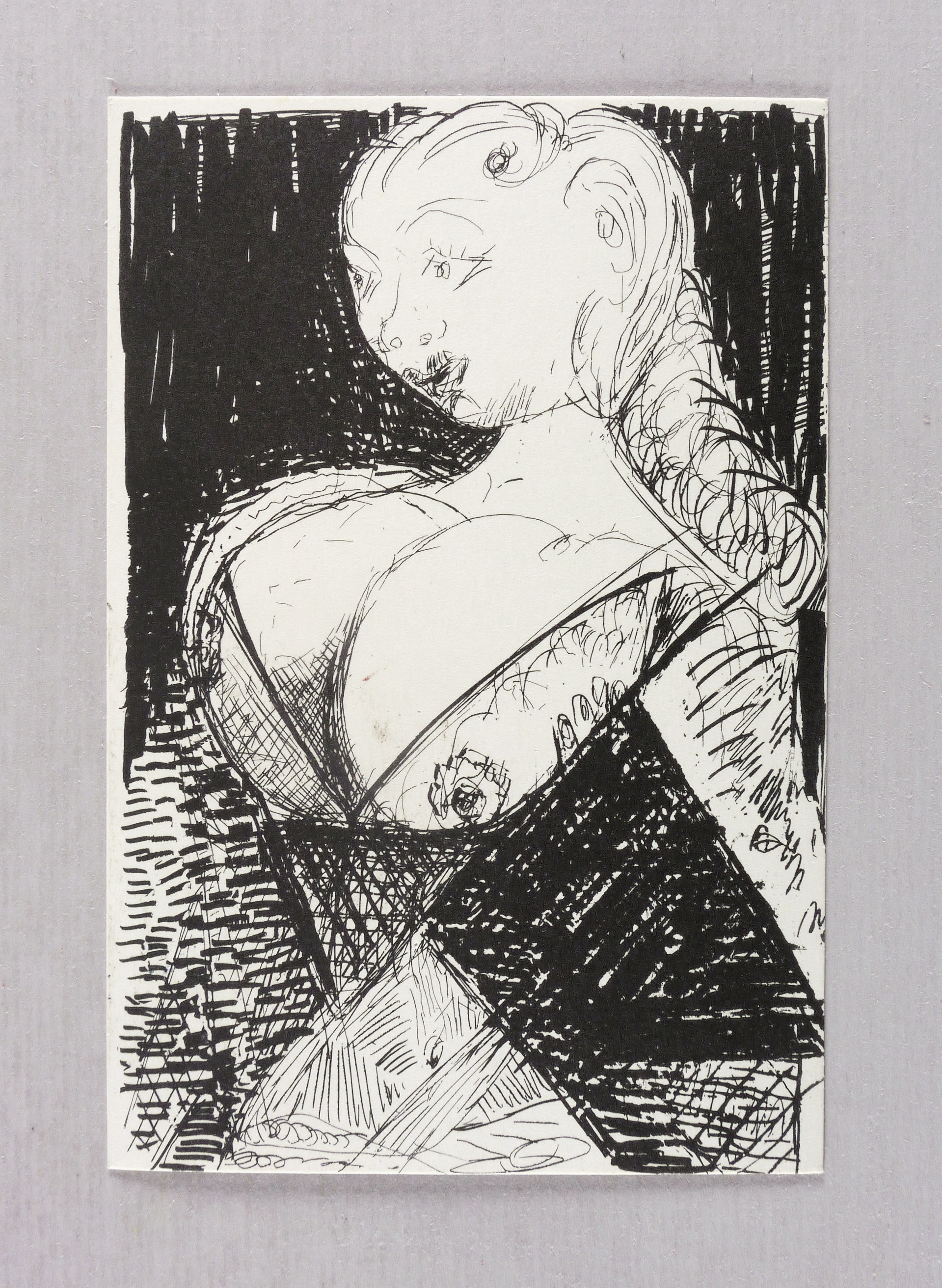 1987. Originaloffset / Kreide & Pinsel, in Schwarz, auf weißem Werkdruck. – Originale Künstlergrafik, von Claus Weidensdorfer. – 15,1 x 10,0 cm (Darstellung / Blatt).