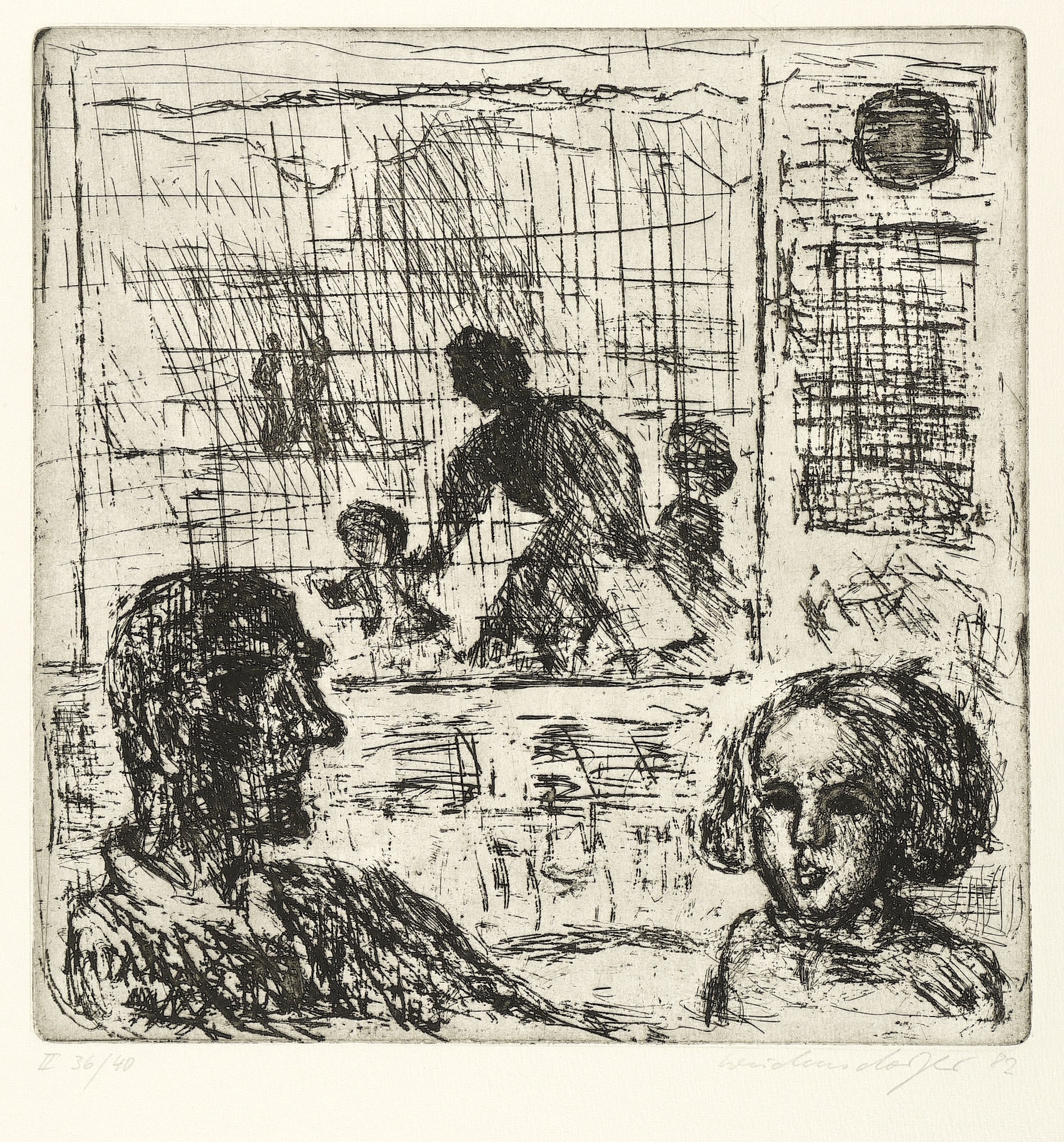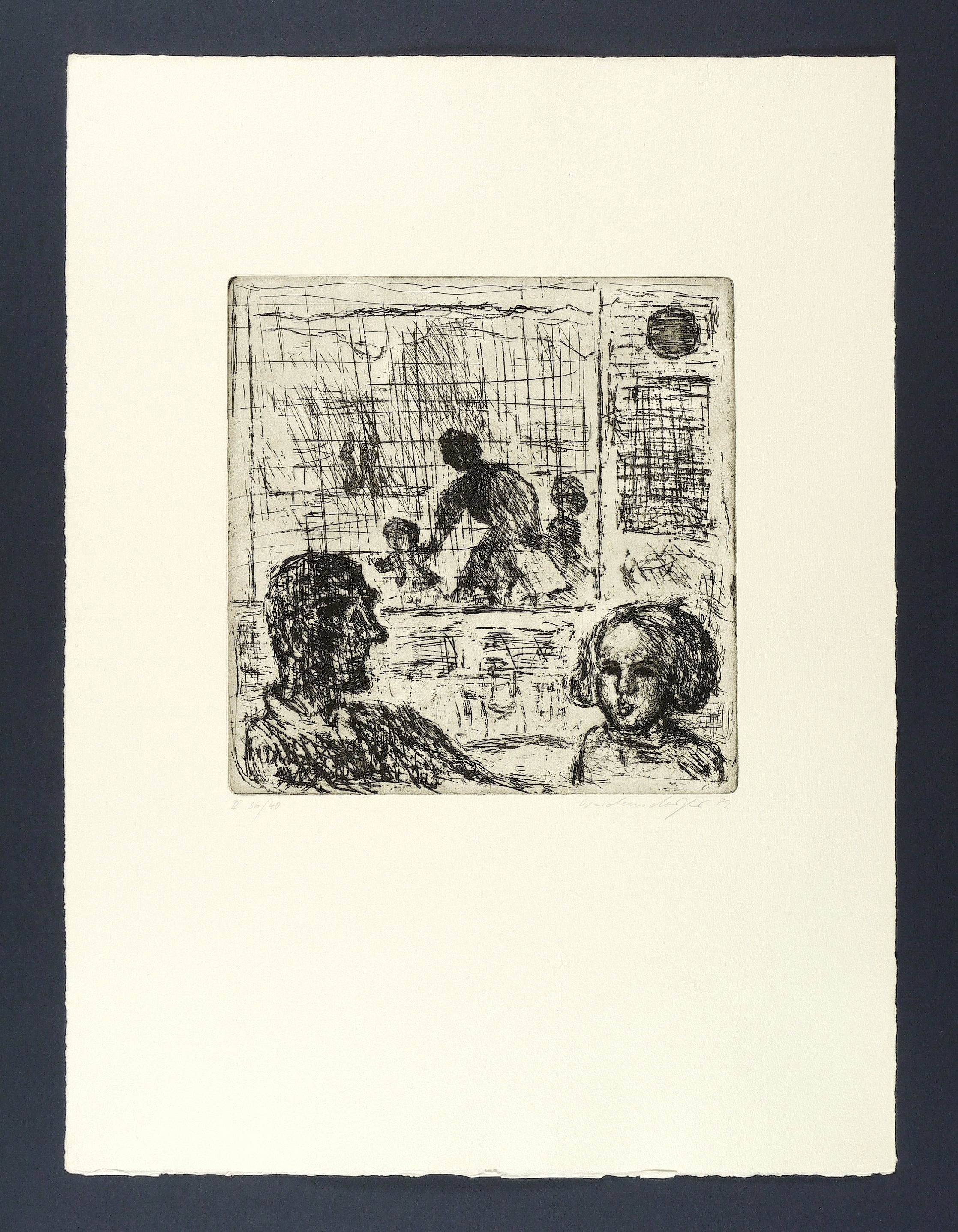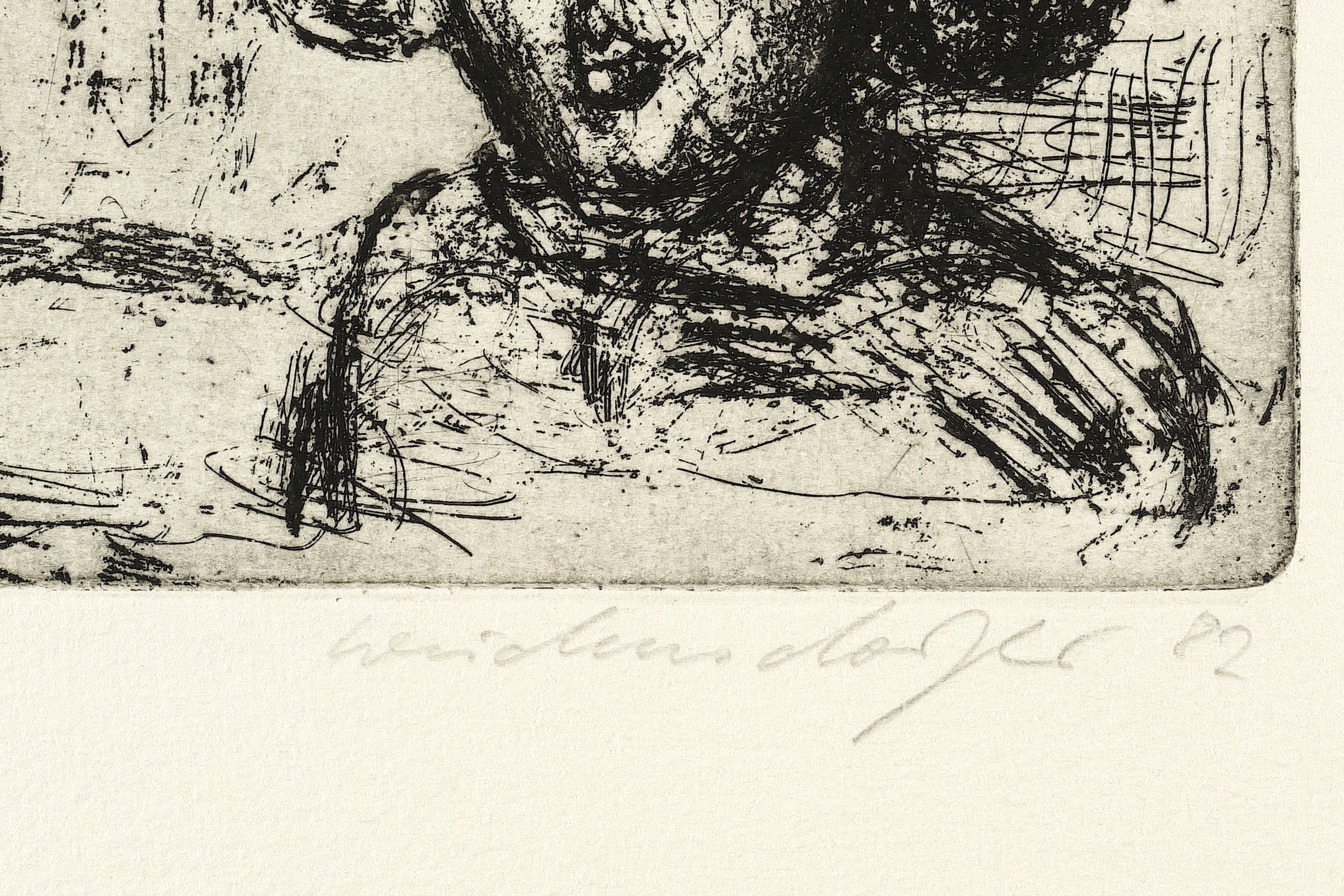 1982. Radierung / Strichätzung & Kaltnadel, in Schwarz, mit Plattenton, auf Hahnemühle. – Originale Künstlergrafik, von Claus Weidensdorfer. – Auflage Exemplar Nr. 36/40. – 24,6 x 24,2 cm (Darstellung / Platte), 53 x 40 cm (Blatt).