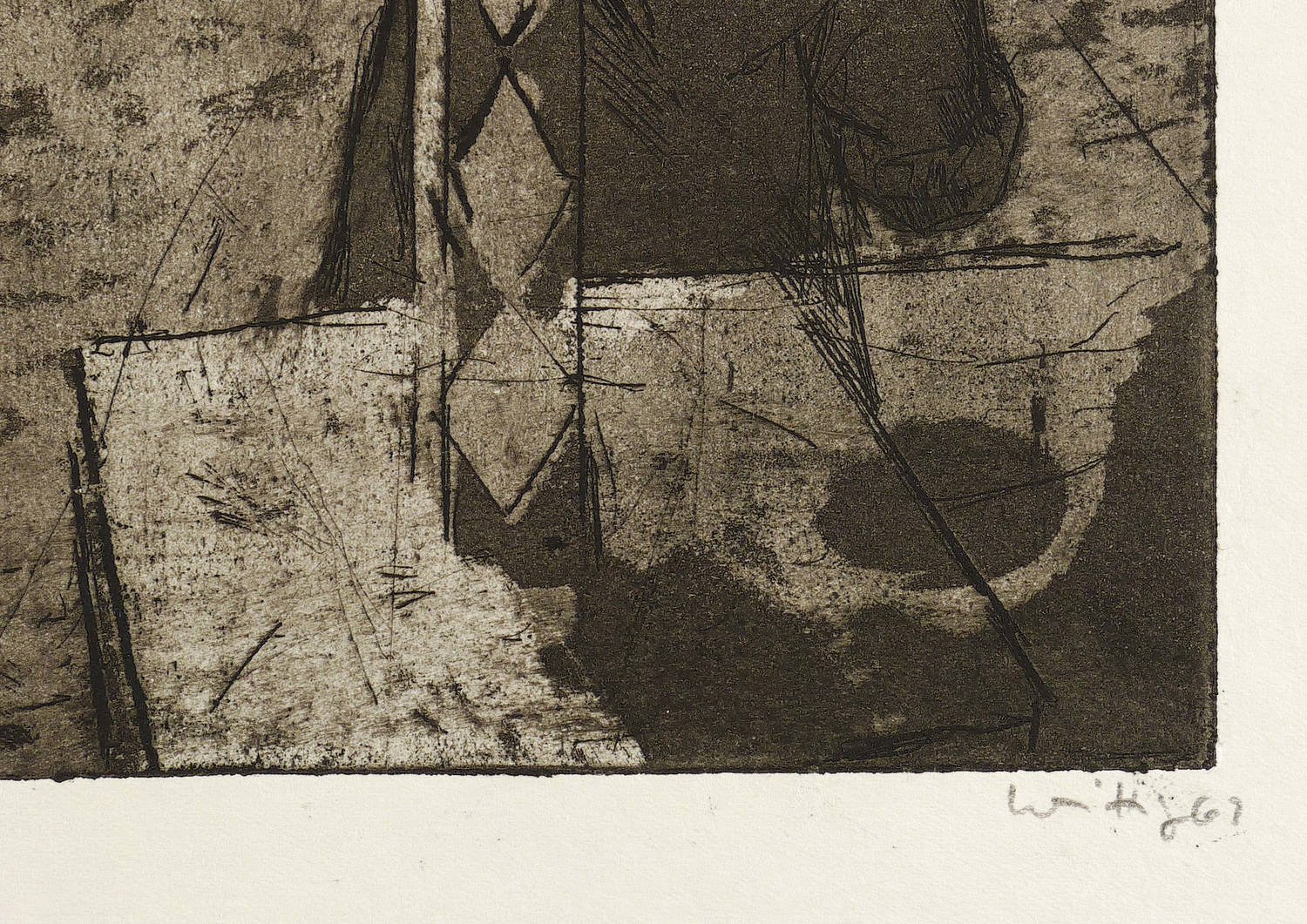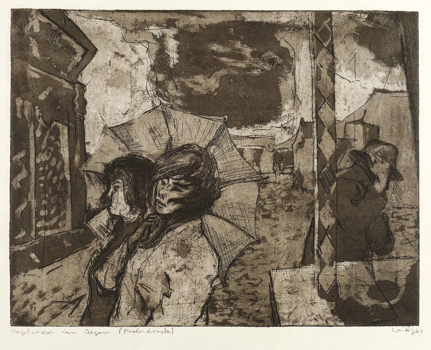 1961. Radierung / Aquatinta, in Schwarz, auf weißlichem Papier. – Originale Künstlergrafik, von Werner Wittig. – Probedruck. – 24,7 x 32,0 cm (Darstellung / Platte), 30 x 39 cm (Blatt).