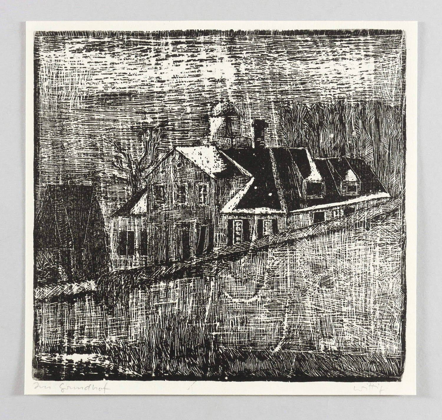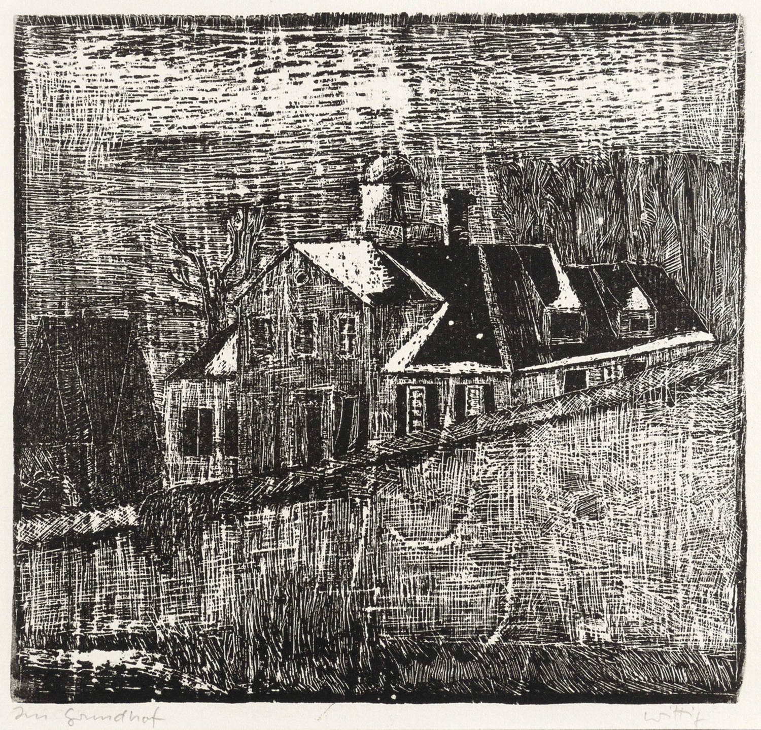 Reinhardt (2000) 40 a (von b). – Rechts unten in Bleistift signiert: ″Wittig″. Links eigenhändig abweichender Titel: ″Im Grundhof″. – Im Turmhaus des Grundhofes von Radebeul wohnte der Radebeuler Maler Paul Wilhelm. – Ohne Mangel. Sehr guter Zustand.