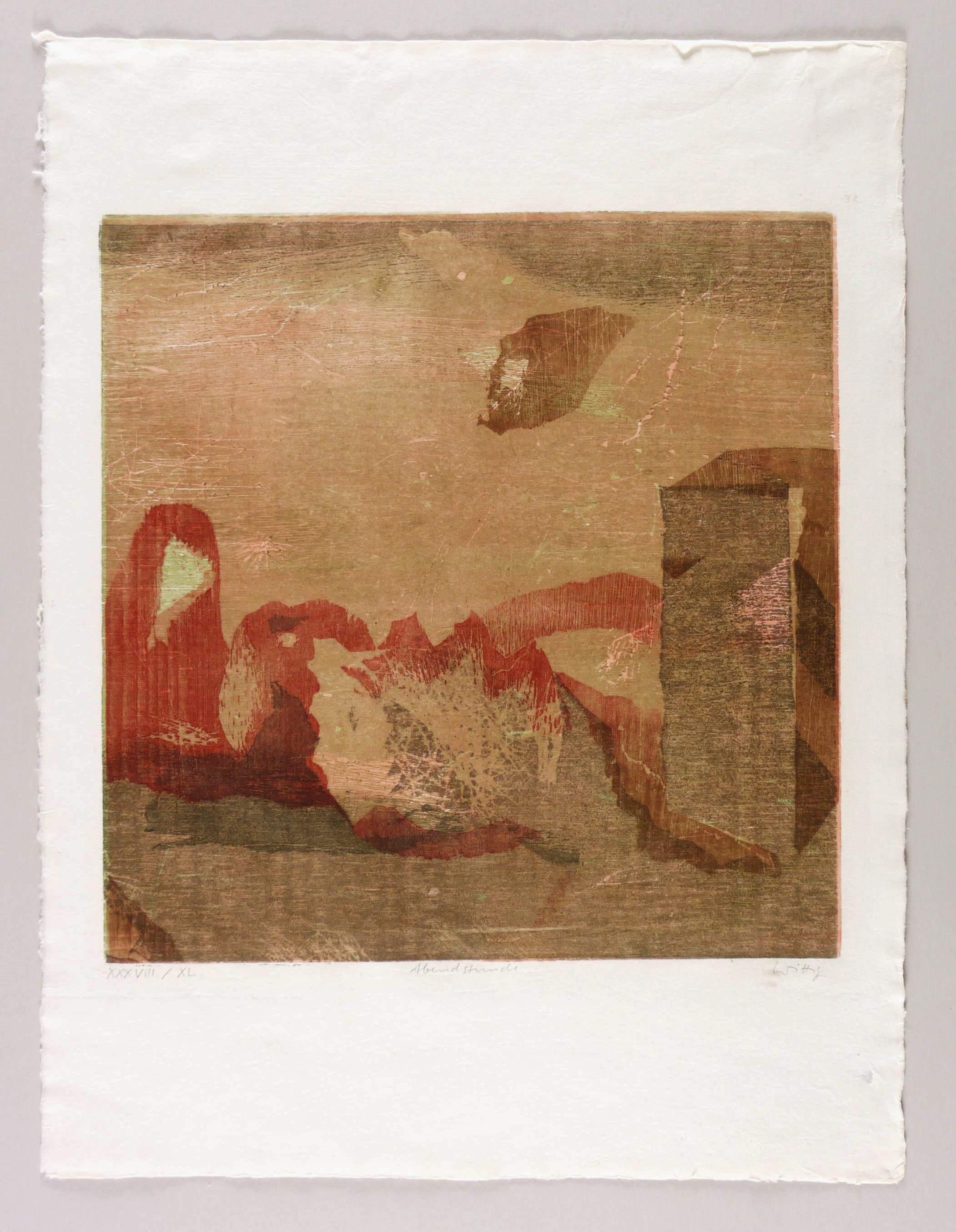 1985. Farbholzriss, in 6 Farben, von 5 Stöcken, auf rauem hellem Japan. – Originale Künstlergrafik, von Werner Wittig. – Auflage Exemplar Nr. 38/40. – 36,8 x 36,4 cm (Darstellung / Druckbild), 56 x 43 cm (Blatt).