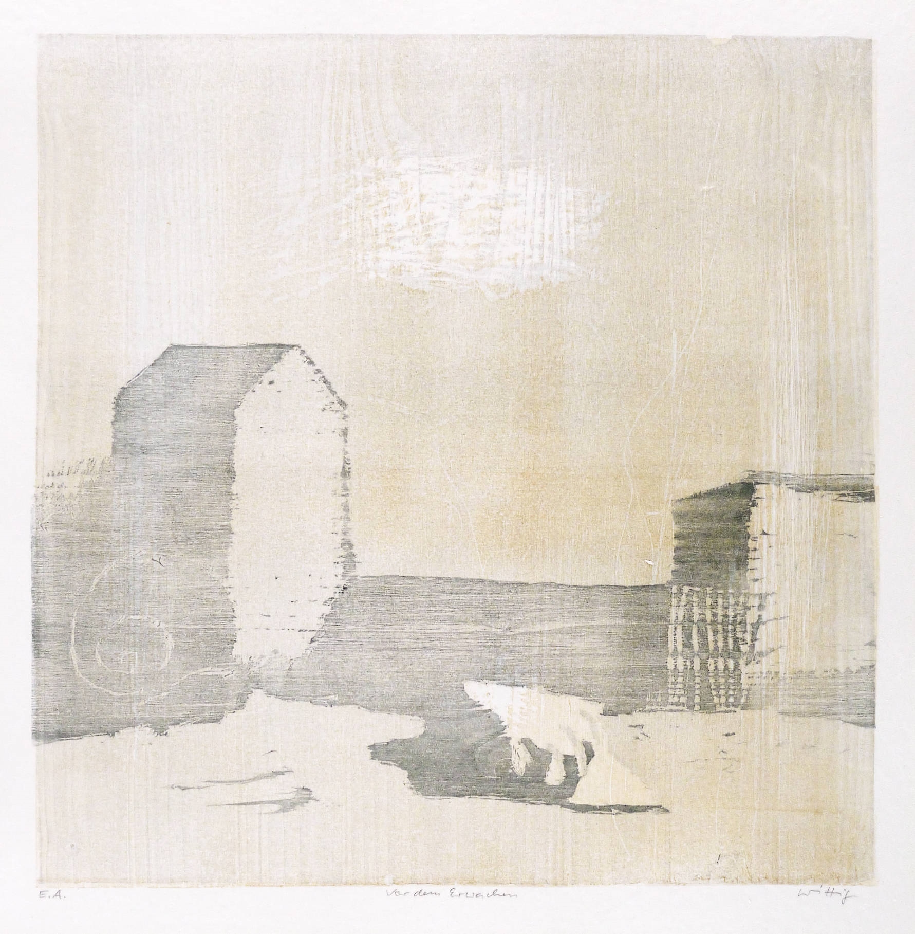 Reinhardt (2000) 215 b. Reinhardt (1993) 367 b (von b). – Rechts unten in Bleistift signiert: ″Wittig″. Links Auflagenbezeichnung: ″E.A.″ Mittig Titel: ″Vor dem Erwachen″. – Eines von insgesamt 11 Künstlerexemplaren. – Schönes Blatt. Sehr guter Zustand.