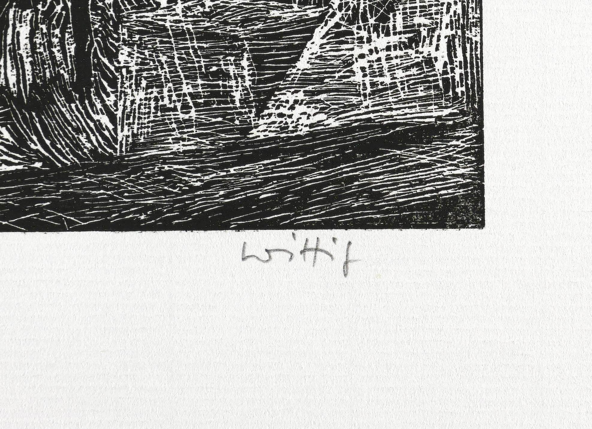 1973. Holzriss, in Schwarz, auf rauem hellchamois Maschinenbütten. – Originale Künstlergrafik, von Werner Wittig. – Auflage 130 Exemplare. – 19,8 x 24,9 cm (Darstellung / Druckstock), 29 x 36 cm (Blatt).