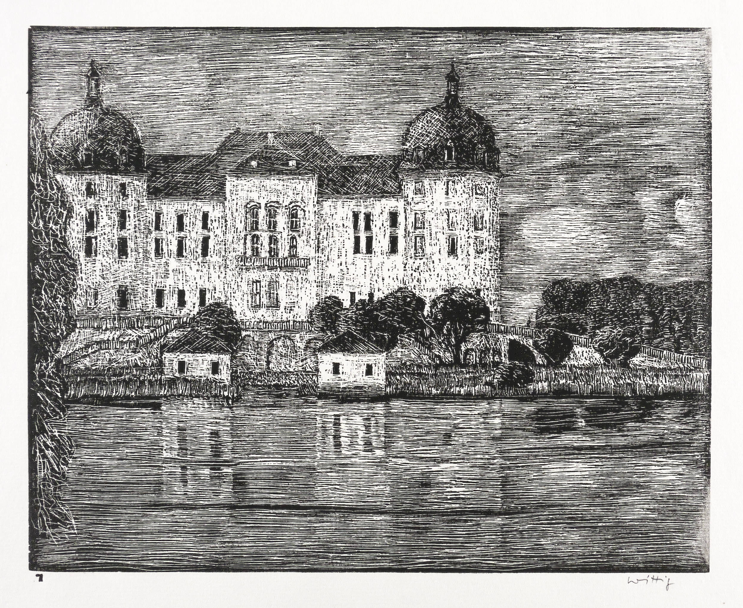 Werner Wittig (1930 Chemnitz - 2013 Radebeul). Deutscher Maler und Grafiker. 1952-57 Studium der Grafik an der HfbK Dresden bei Erich Fraaß, Hans Theo Richter und Max Schwimmer. Freundschaft mit Claus Weidensdorfer. 1957 Aufnahme in den Verband Bildender Künstler der DDR. Zahlreiche Einzelausstellungen z.B. in der Galerie Kühl in Dresden. Hans-Theo-Richter-Preis der Sächsischen Akademie der Künste in Dresden. Landschaft und Stillleben sind die zwei Hauptthemen des Künstlers, die meist mittels des Holzrisses oder Farbholzrisses umgesetzt werden. Typisch dabei sind die sichtbaren natürlichen Strukturen des Holzes, die, eingearbeitet in die Komposition, den Grafiken eine organische Lebendigkeit verleihen.