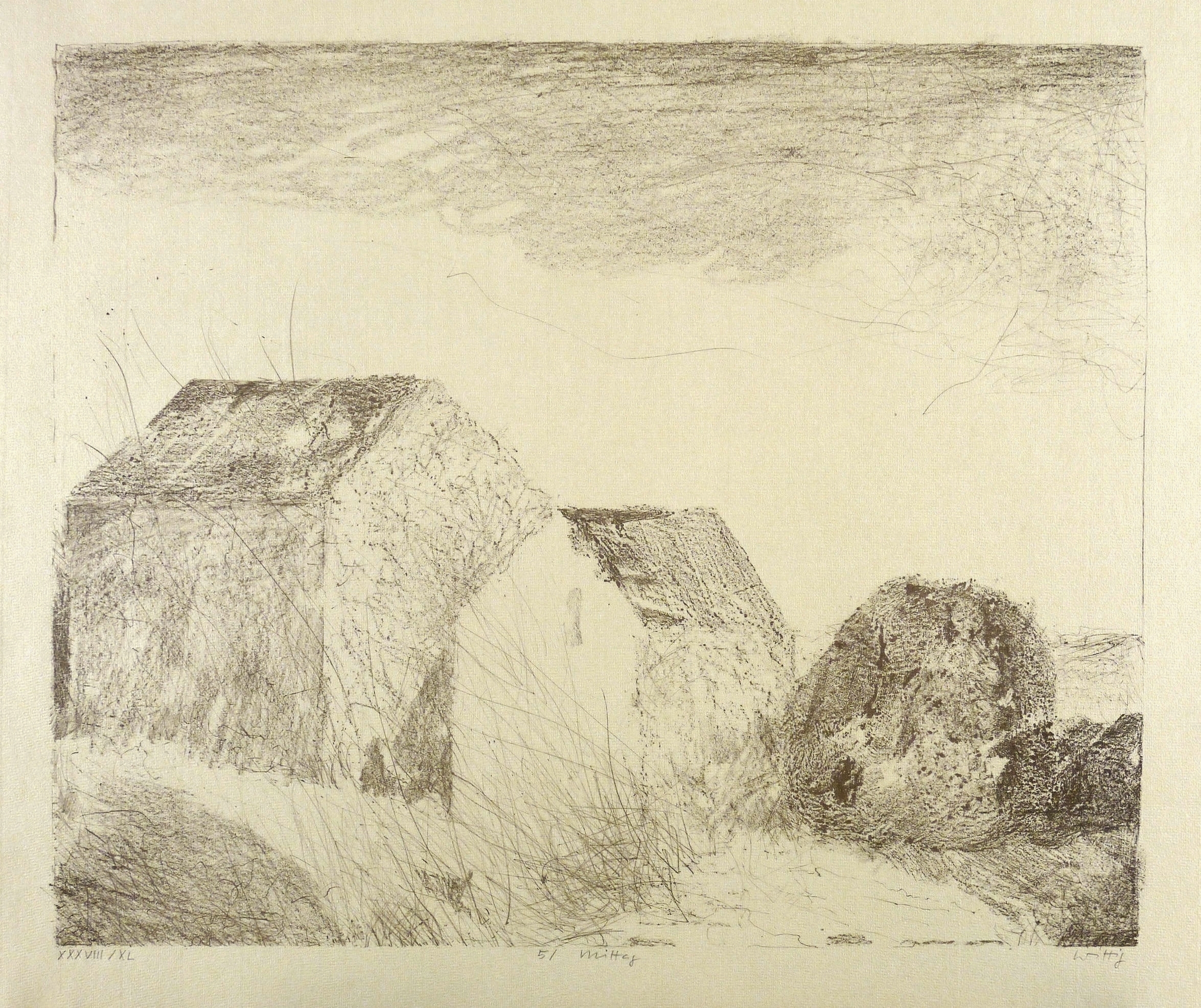 Werner Wittig (1930 Chemnitz - 2013 Radebeul). Deutscher Maler und Grafiker. 1952-57 Studium der Grafik an der HfbK Dresden bei Erich Fraaß, Hans Theo Richter und Max Schwimmer. Freundschaft mit Claus Weidensdorfer. 1957 Aufnahme in den Verband Bildender Künstler der DDR. Zahlreiche Einzelausstellungen z.B. in der Galerie Kühl in Dresden. Hans-Theo-Richter-Preis der Sächsischen Akademie der Künste in Dresden. Landschaft und Stillleben sind die zwei Hauptthemen des Künstlers, die meist mittels des Holzrisses oder Farbholzrisses umgesetzt werden. Typisch dabei sind die sichtbaren natürlichen Strukturen des Holzes, die, eingearbeitet in die Komposition, den Grafiken eine organische Lebendigkeit verleihen.