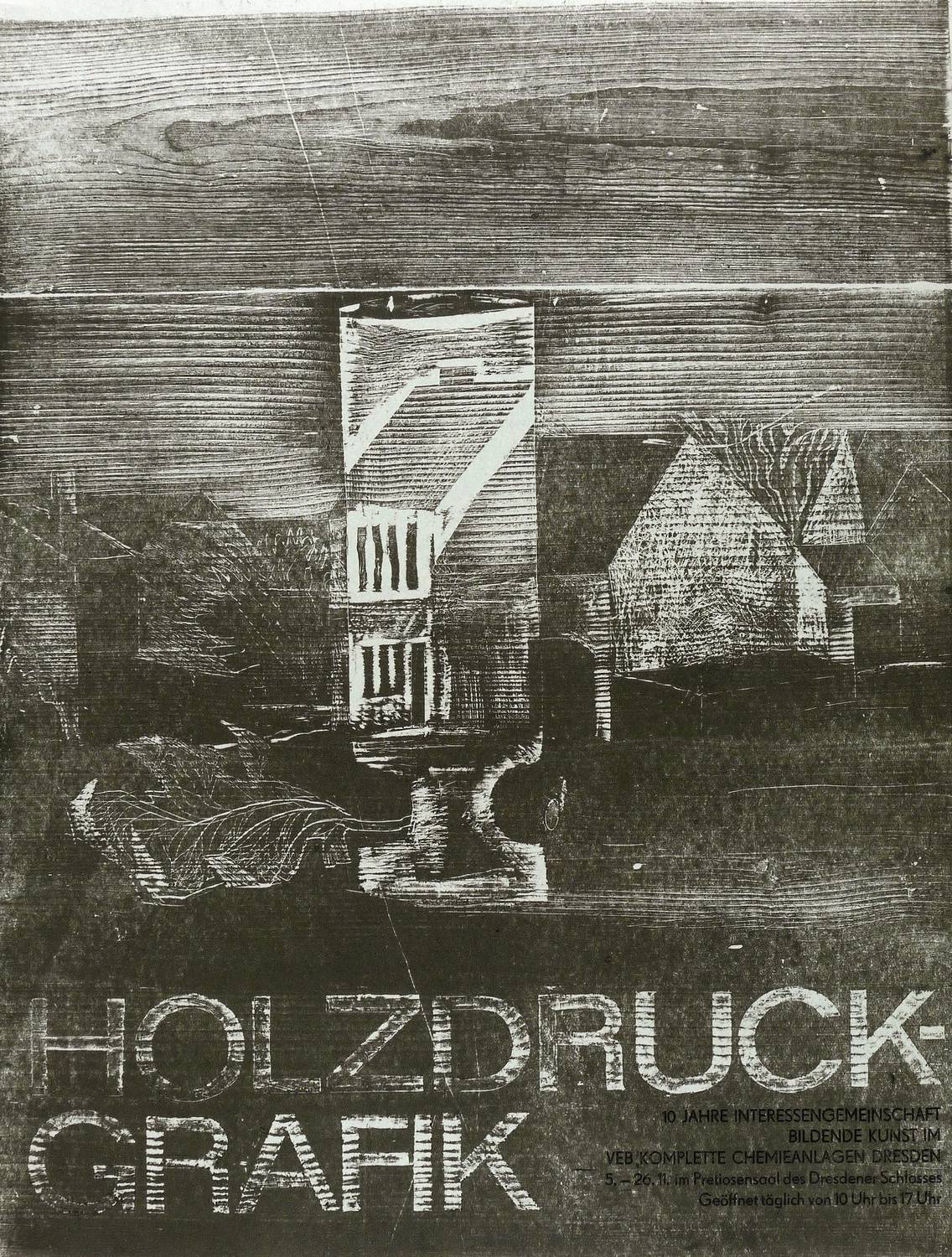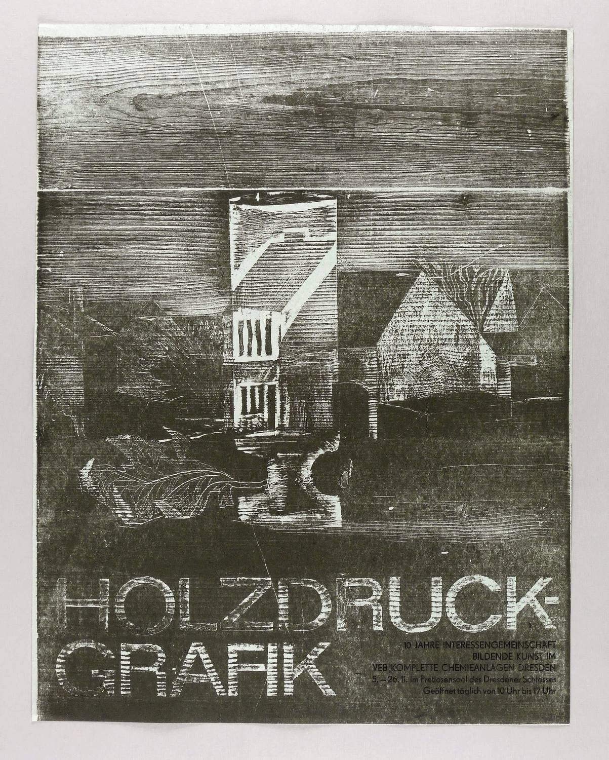 In Bleistift unterhalb signiert und datiert: ″Wittig 78″. – Originalgrafisches Künstlerplakat zur Ausstellung ″Holzdruck-Grafik. 10 Jahre Interessengemeinschaft Bbildende Kunst im VEB Komplette Chemieanlagen Dresden″ im Pretiosensaal im Residenzschloss in Dresden 5.-26.11.1978. – Nicht bei Reinhardt (1993). – Randloser Druck. – Sehr guter Zustand.