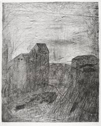 1982. Zinkografie / Kreidezinkografie, in Schwarz, auf hellgelbem grobfasrigem Japan. – Originale Künstlergrafik, von Werner Wittig. – Probedruck. – 68 x 49 cm (Blatt), 57,2 x 46,9 cm (Darstellung / Druckbild).
