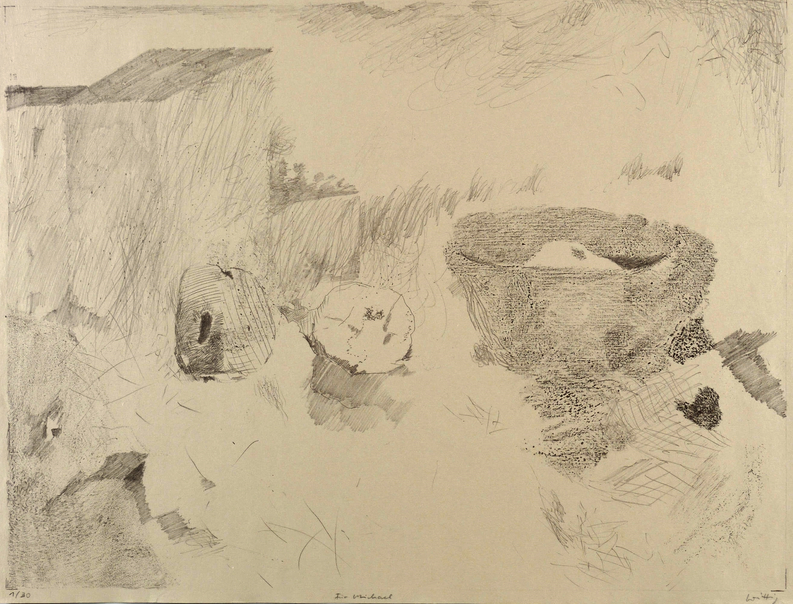 Um 2005. Zinkografie / Kreidezinkografie, in Anthrazit, auf rötlichem Achatpapier. – Originale Künstlergrafik, von Werner Wittig. – Auflage Exemplar Nr 1/30. – 47,5 x 63,0 cm (Darstellung), 50 x 66 cm (Blatt).