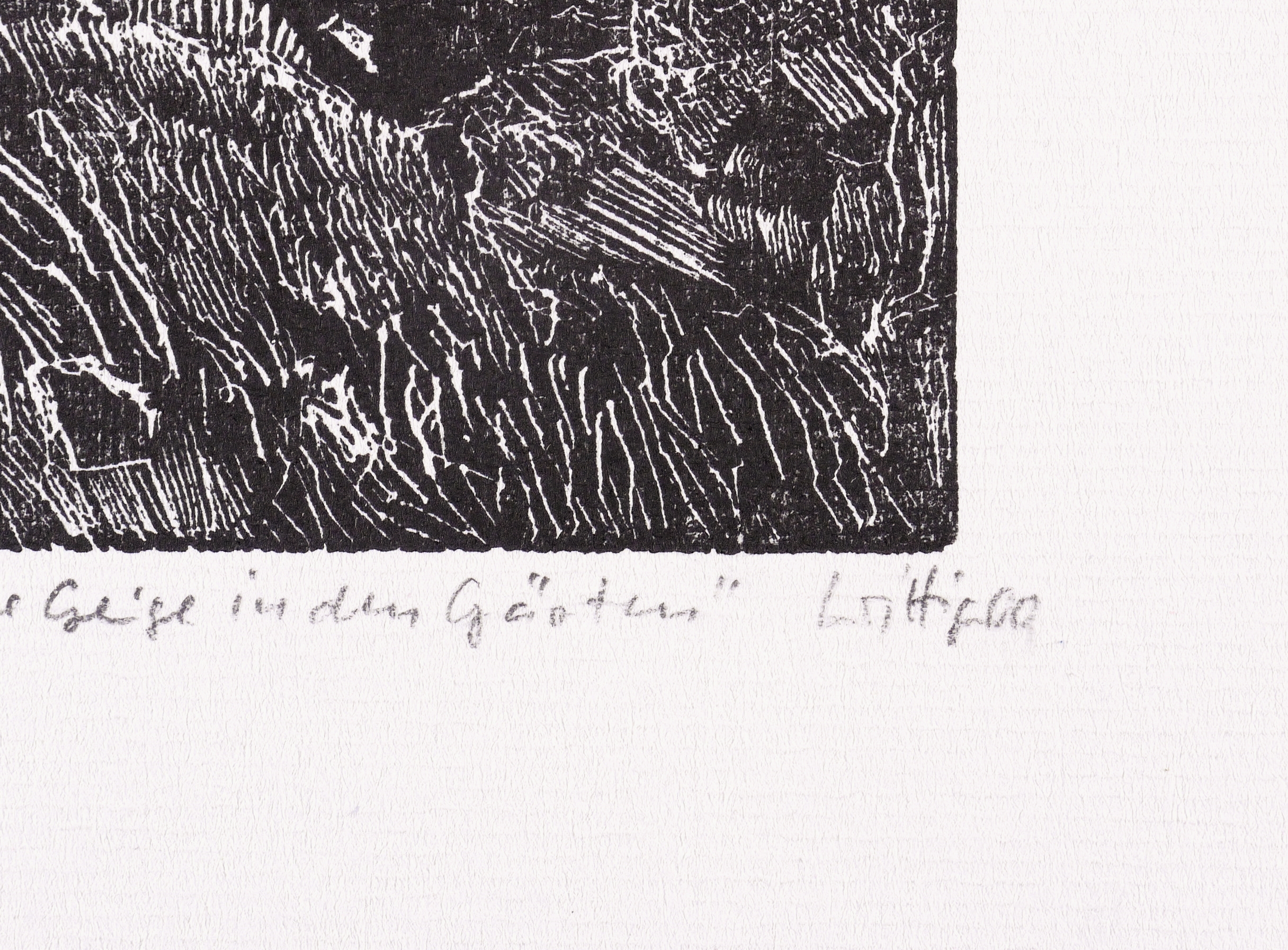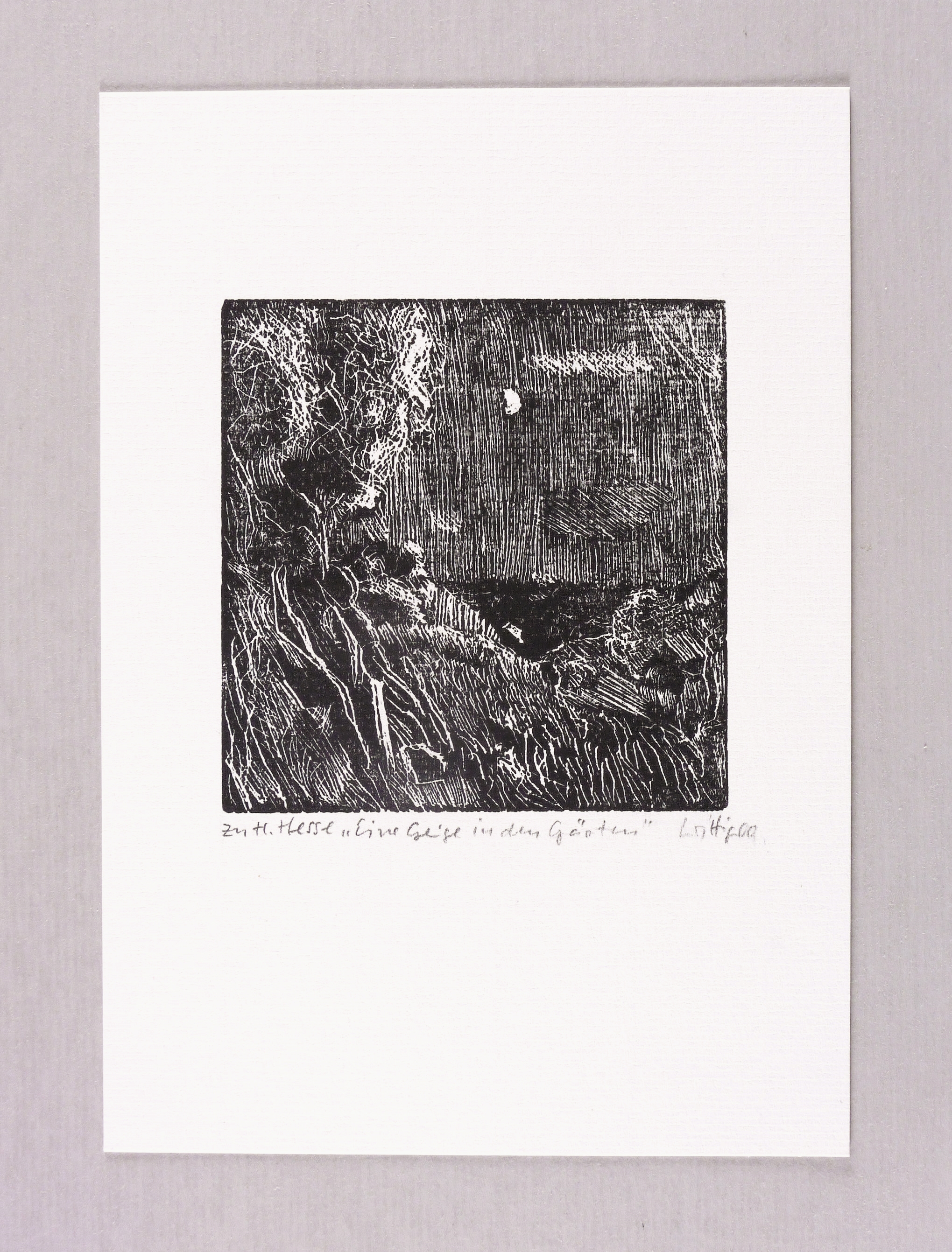 2000. Holzriss, in Schwarz, auf festem hellchamois Maschinenbütten. – Originale Künstlergrafik, von Werner Wittig. – 21 x 15 cm (Blatt), 10,2 x 9,9 cm (Darstellung / Druckstock).