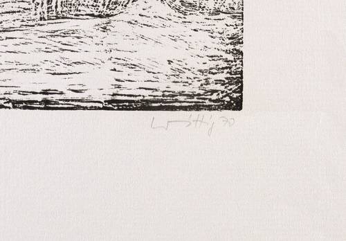 1970. Holzriss, in Schwarz, auf hellchamois Maschinenbütten. – Originale Künstlergrafik, von Werner Wittig. – Auflage Exemplar Nr. 71/120. – 19,1 x 25,0 cm (Darstellung / Druckbild), 34 x 38 cm (Blatt).
