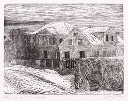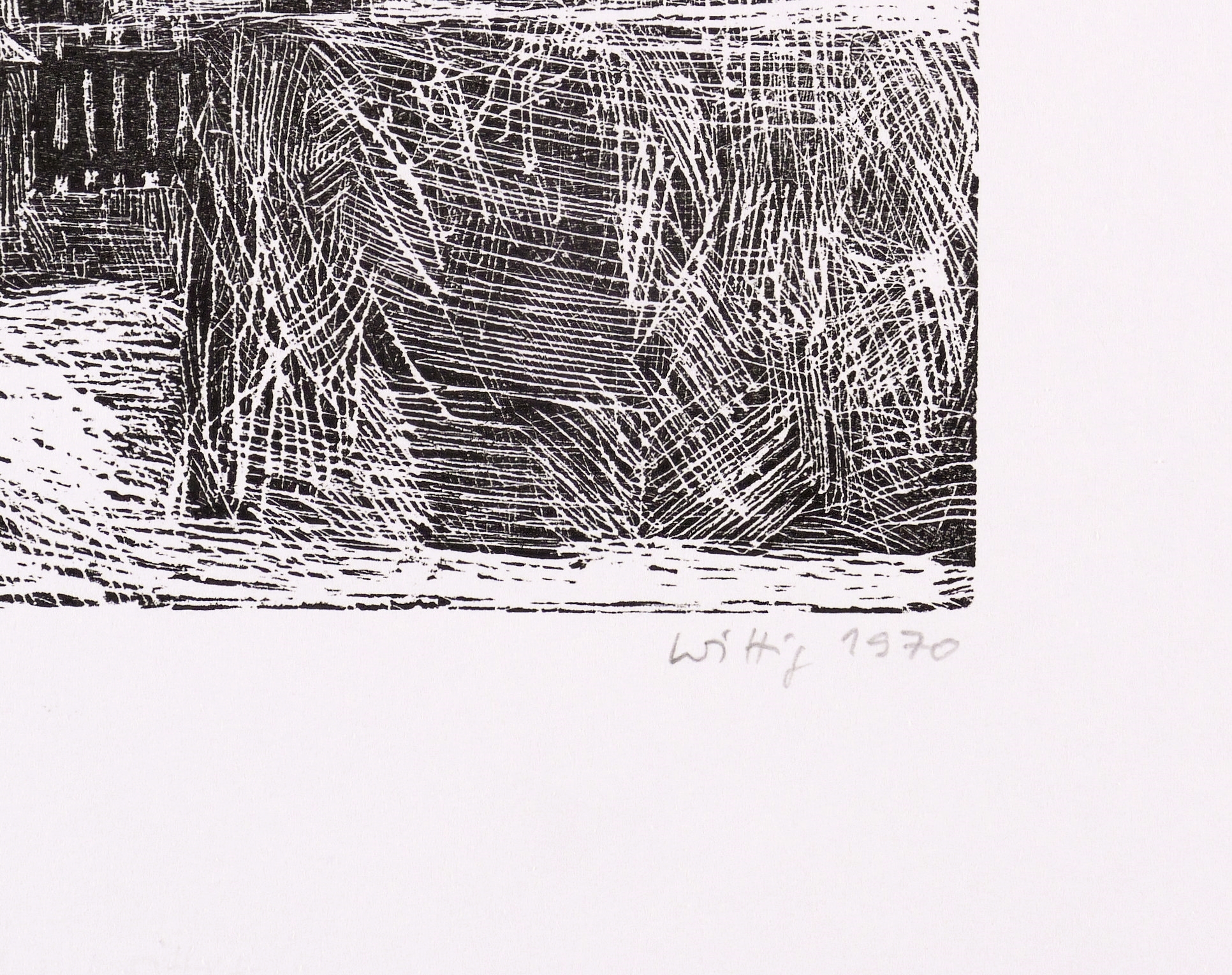 1970. Holzriss, in Schwarz, auf weißem Werkdruck. – Originale Künstlergrafik, von Werner Wittig. – Auflage 30 Exemplare. – 15,3 x 20,0 cm (Darstellung / Druckbild), 22 x 26 cm (Blatt).