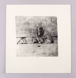 1970-1980. Offsetlithografie / Umdruck, von Holzriss, in Schwarz, auf hellgelbem Velinkarton. – Originale Künstlergrafik, von Werner Wittig. – 22,7 x 23,4 cm (Darstellung / Druckbild), 39 x 37 cm (Blatt).
