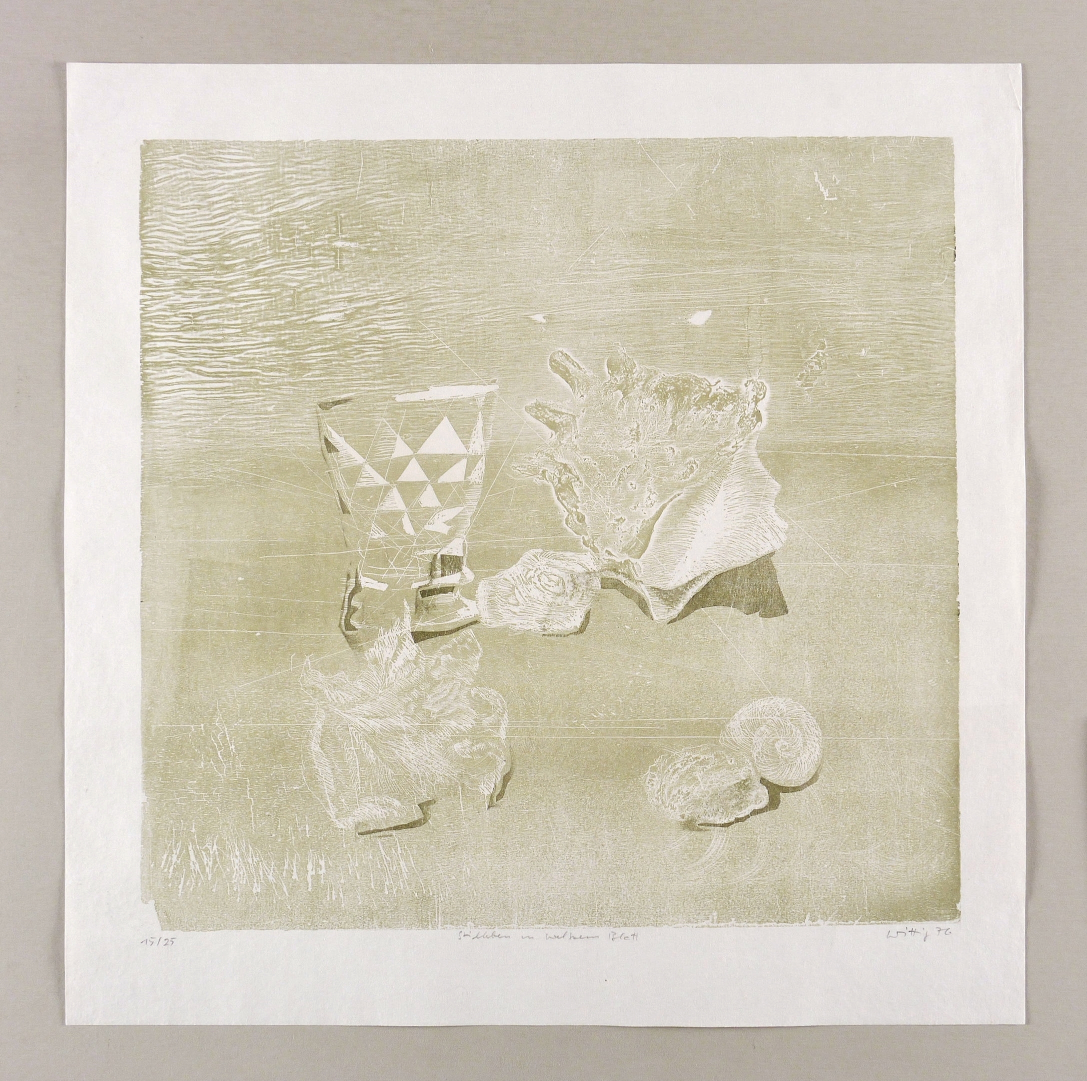 Reinhardt (2000) 76. Reinhardt (1993) 174. – Rechts unten in Bleistift signiert und datiert: ″Wittig 76″. Links Auflagenbezeichnung: ″15/25″. Mittig Titel: ″Stilleben m. welkem Blatt″. – Tadellos. Sehr guter Zustand.
