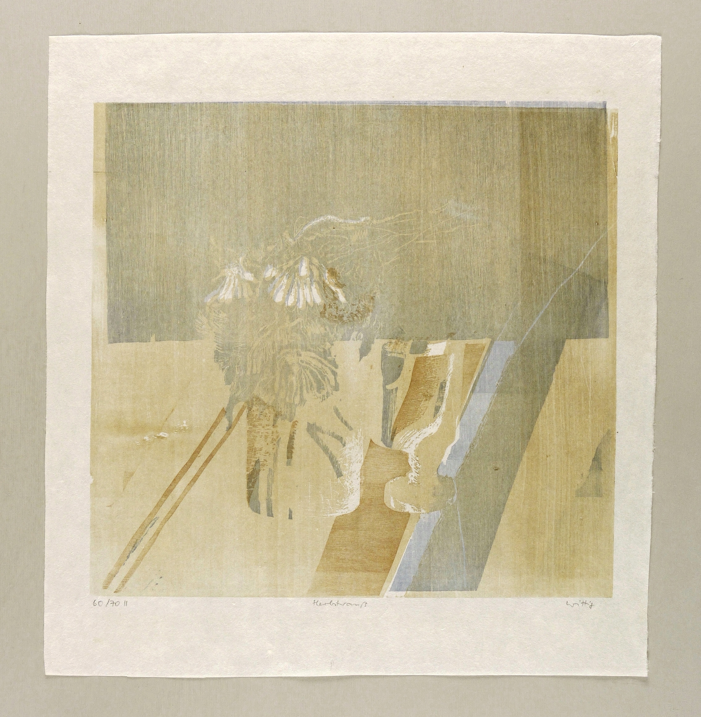 Reinhardt (2000) 83. Reinhardt (1993) 181. – Rechts unten in Bleistift signiert: ″Wittig″. Links Auflagenbezeichnung: ″60/70 II″. Mittig Titel: ″Herbststrauß″. – Tadellos. Sehr guter Zustand.