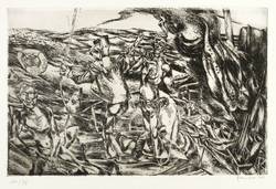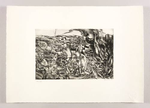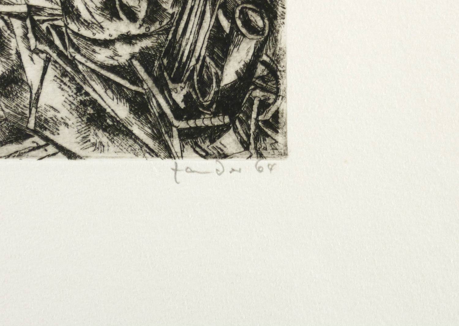 1964. Radierung / Strichätzung, in Schwarz, auf weichem gelbem Velin. – Originale Künstlergrafik, von Heinz Zander. – Auflage Exemplar Nr. 93/100. – 20,1 x 30,7 cm (Darstellung / Platte), 38 x 54 cm (Blatt).