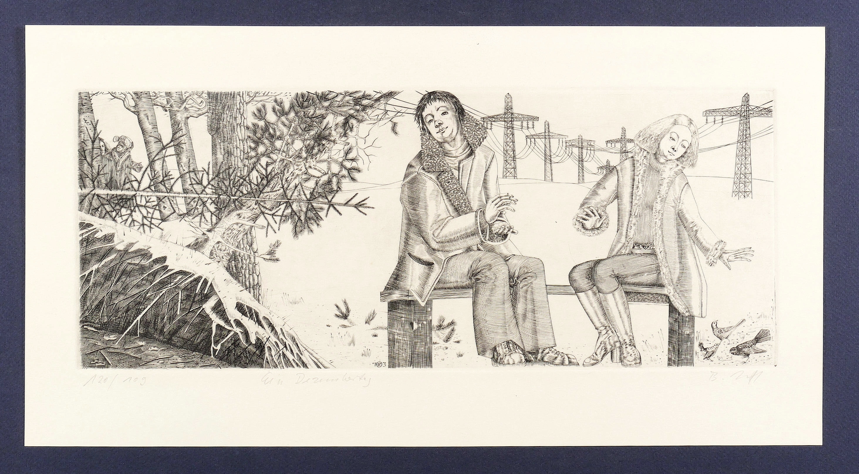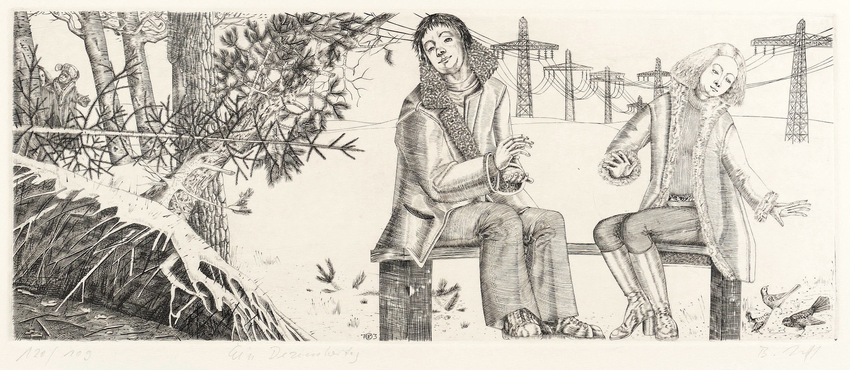 Baldwin Zettl (*1943 Falkenau/Eger, lebt und arbeitet in Leipzig). Deutscher Grafiker. 1964–69 Studium an der Hochschule für Grafik und Buchkunst Leipzig (HGB) bei Werner Tübke, Gerhard Kurt Müller und Rolf Kuhrt. Meisterhafte Silberstiftzeichnungen und Kupferstiche. Gehört mit Karl-Georg Hirsch und Rolf Münzner zu den herausragenden Grafikern der Leipziger Schule.