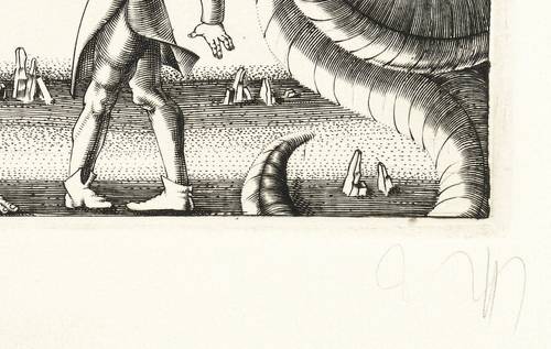 Lübbert 91/21. – Aus: Baldwin Zettl, Richard Wagner - Der Ring des Nibelungen. 22 Originalkupferstiche (Leipzig: Sisyphos-Presse 2001). – Rechts unten in Bleistift signiert. – Illustration zu Richard Wagners Oper ″Rheingold″. – Sehr guter Zustand.