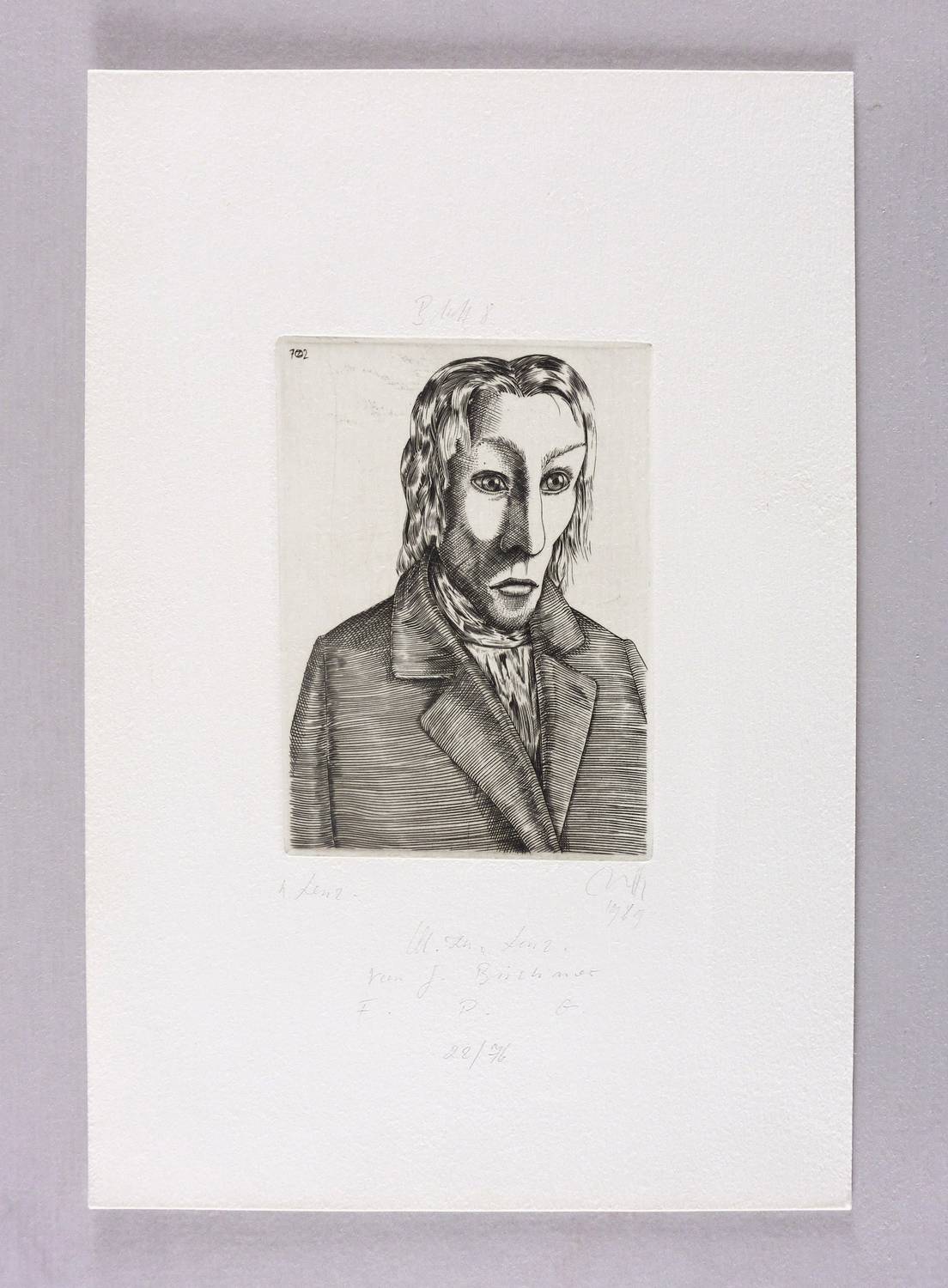 Baldwin Zettl (*1943 Falkenau/Eger, lebt und arbeitet in Leipzig). Deutscher Grafiker. 1964–69 Studium an der Hochschule für Grafik und Buchkunst Leipzig (HGB) bei Werner Tübke, Gerhard Kurt Müller und Rolf Kuhrt. Meisterhafte Silberstiftzeichnungen und Kupferstiche. Gehört mit Karl-Georg Hirsch und Rolf Münzner zu den herausragenden Grafikern der Leipziger Schule.