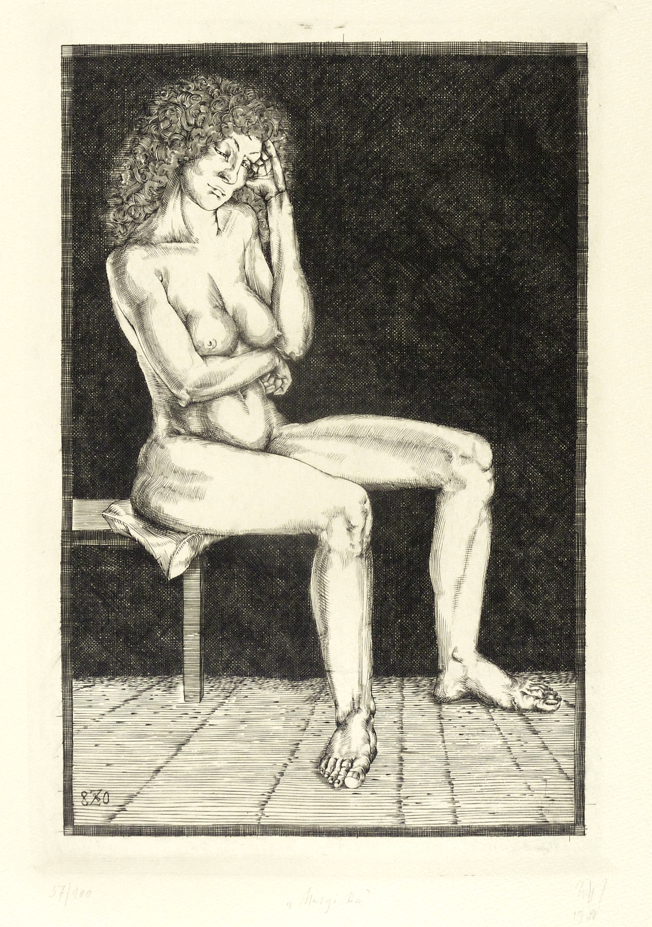 Lübbert 80/3 C (von E). – Rechts unten in Bleistift signiert und datiert: ″Zettl 1980″. Links Auflagenbezeichnung: ″57/100″. Mittig Titel: ″Margitta″. In der Platte links unten Monogramm und Jahr: ″8 BZ 0″. – Sehr guter Zustand.