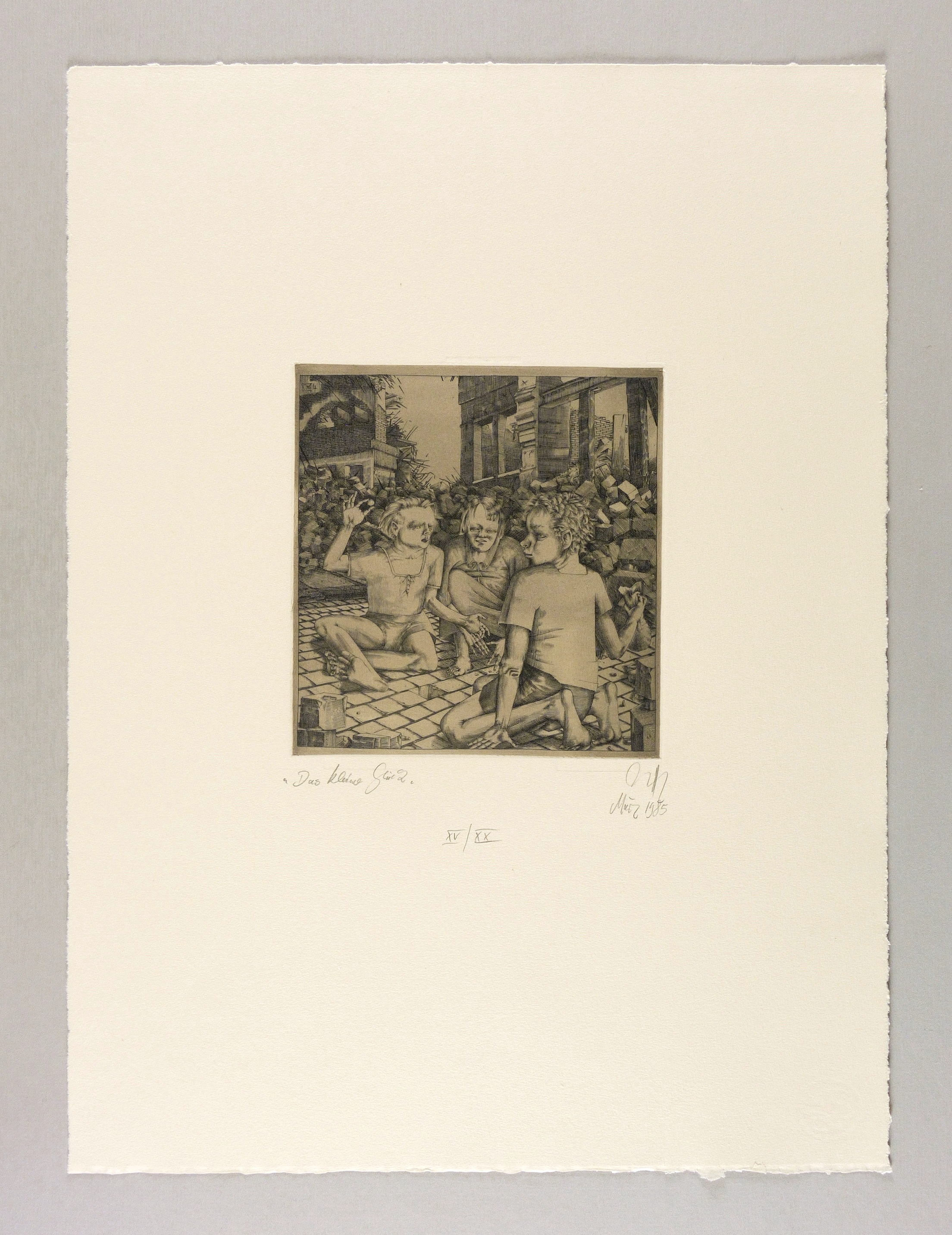 Lübbert 84/2 D (von D). – Rechts unter der Darstellung in Bleistift signiert und datiert: ″Zettl März 1985″. Links Titel: ″Das kleine Glück″. Mittig darunter Auflagenbezeichnung: ″XV/XX″. Wasserzeichen der Hahnemühle. – Charakteristisches Blatt des Künstlers. – Tadellos. Sehr guter Zustand.