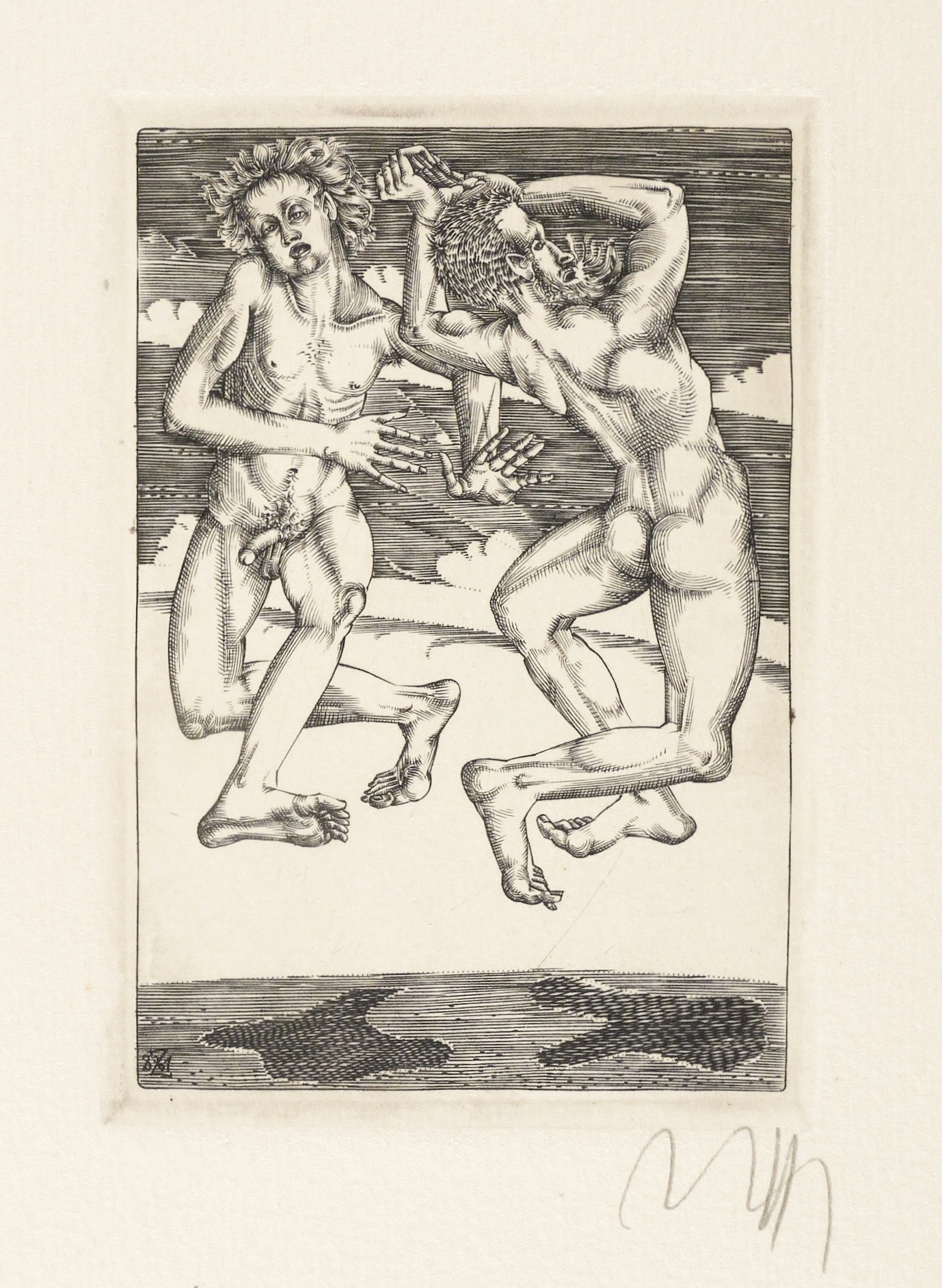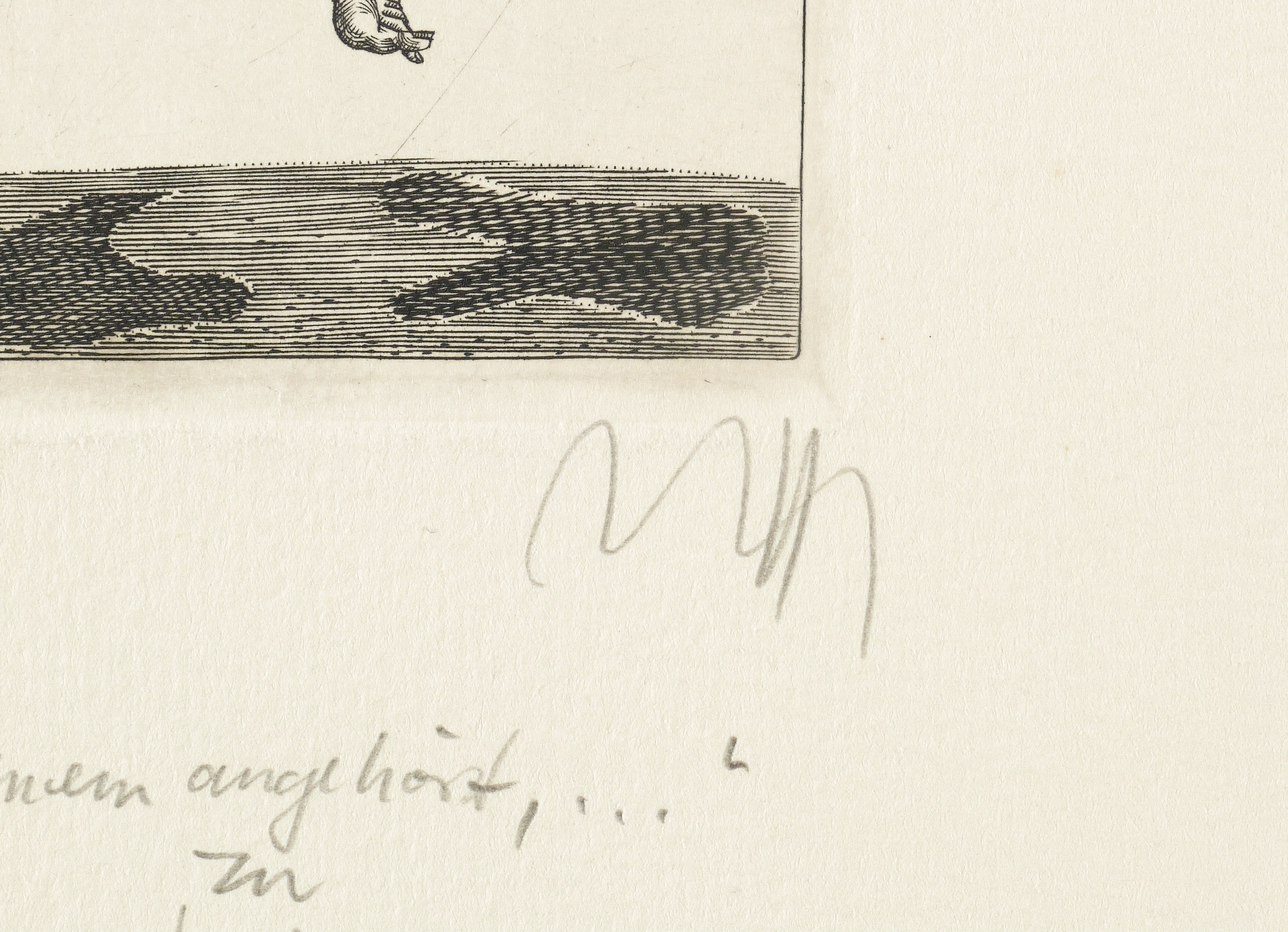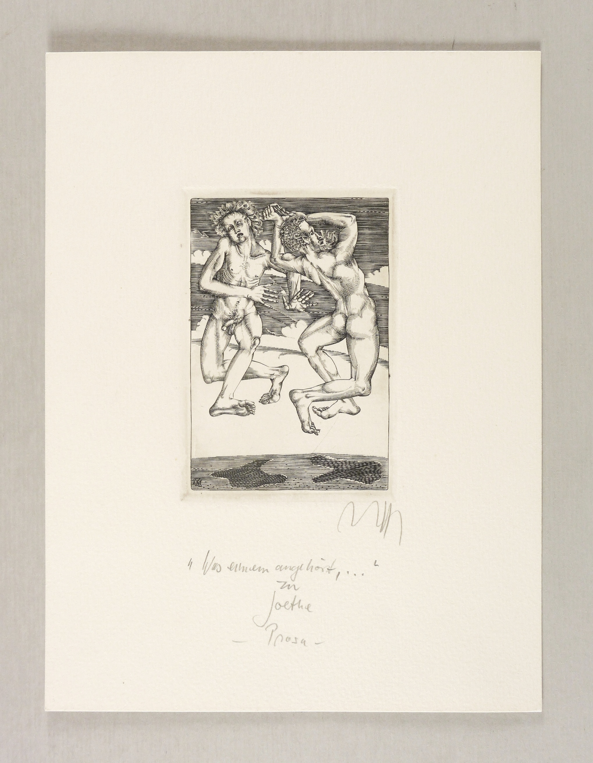 Lübbert 81/12 c (von c). Griffelkunst 265 A1. – Rechts unten in Bleistift signiert: ″Zettl″. Eigenhändige Betitelung. – Zum Vers von Goethe: ″Was einem angehört, wird man nicht los, und wenn man es wegwürfe.″ – Tadellos. Sehr guter Zustand.