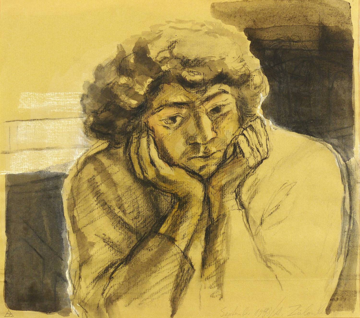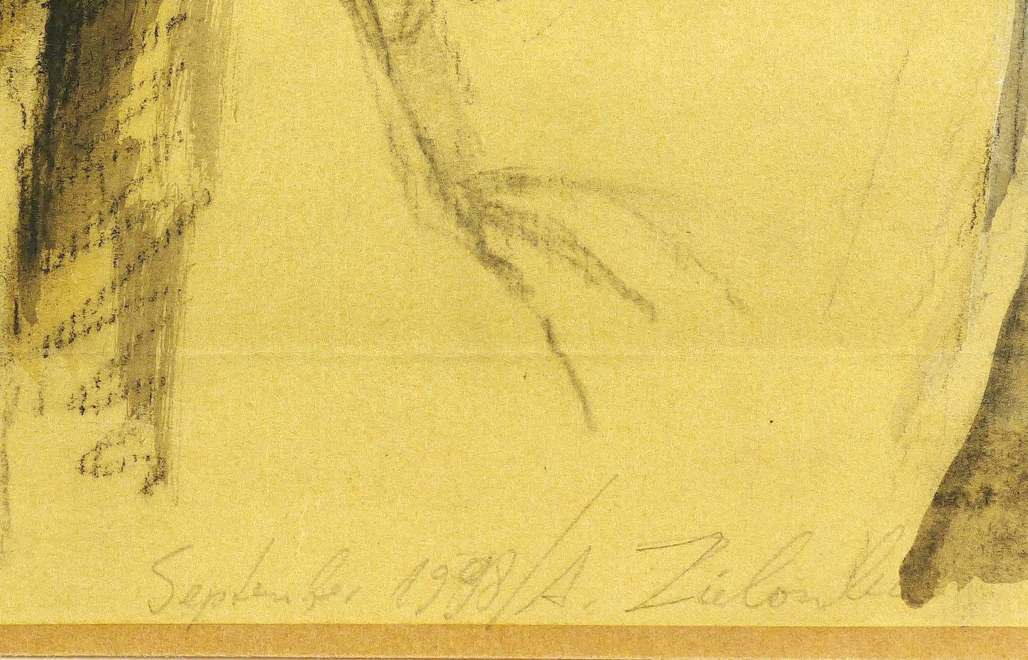 1998. Zeichnung / Kreide, Tusche & Aquarell, auf Papier. – Originale Künstlergrafik, von Almut-Sophia Zielonka. – Unikat. – 27,5 x 30,5 cm (Darstellung / Blatt).