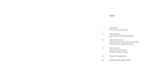 8°, Broschur, 138 S., 56 Werk-Abb., 2 fotogr. Portraits. - Katalog zur Jubiläumsausstellung anlässlich des 80. Geburtstages ″Klaus Drechsler - Vita brevis″ in der Galerie Himmel in Dresden, 22.5.-18.7.2020. - Geleitwort von Anja Himmel und Michael Böhlitz, Texte von Frank Oehmichen, Anke Fröhlich-Schauseil und Jördis Lademann. Ausführlicher Katalogteil mit wesentlichen Arbeiten des Künstlers. - Erstausgabe, neu.
