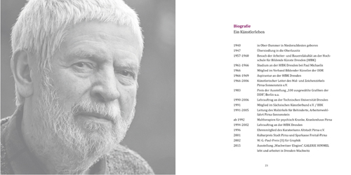 Klaus Drechsler (*1940 Ober-Dammer, lebt und arbeitet in Dresden-Wachwitz). Deutscher Maler, Aquarellmaler und Grafiker. 1957-60 Besuch der Arbeiter-und-Bauernfakultät an der Hochschule für Bildende Künste Dresden (HfBK). Langjähriger Austausch mit Hans Jüchser. 1961–66 Studium an der Kunstakademie bei Paul Michaelis. Seit 1969 freiberuflich tätig. Seit 1980 Beschäftigung mit Farbgrafik. Seit 1990 Lehrauftrag an der TU Dresden. 1994–2002 Lehrauftrag an der Dresdner Kunstakademie. 2001 Kulturpreis der Stadt Pirna und der Sparkasse Freital-Pirna.